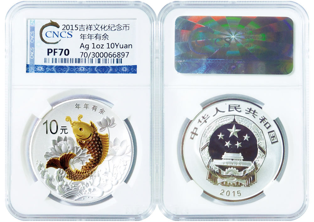編號:2015-0307-ag-1oz,年號:2015,國別:中國,面額:10元,材質:銀,成色:99.9%,質量:精制,重量:31.104克(1盎司),形狀:圓形,直徑:40mm,發行量:60000枚。
