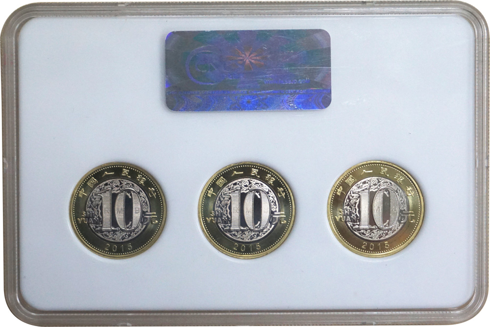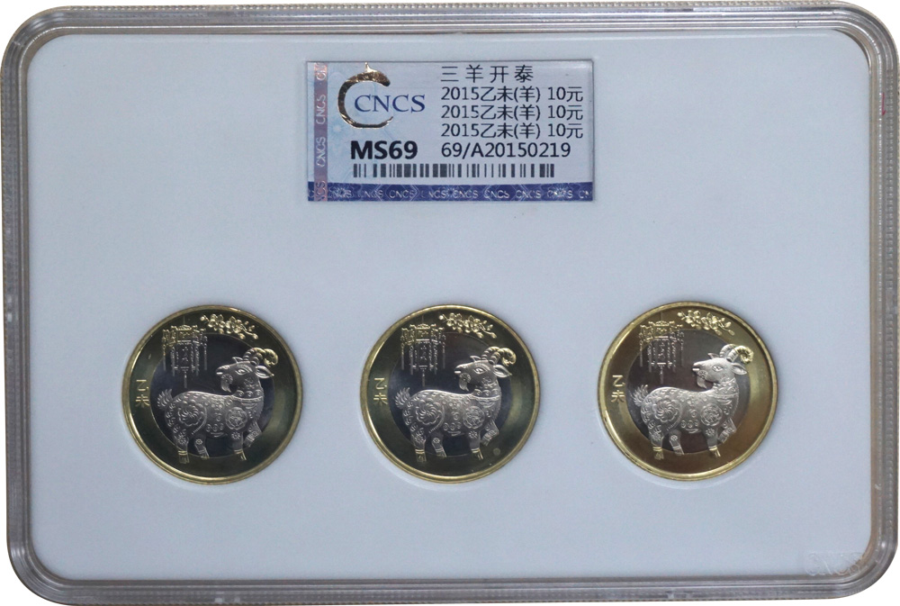 羊年生肖紀念幣(二輪)是2015年賀歲普通紀念幣,正面圖案由“中國人民銀行”、“10元”、漢語拼音“SHIYUAN”及年號“2015”字樣構成,背面圖案為一只傳統(tǒng)裝飾造型的小山羊、宮燈、花朵及“乙未”字樣組成,發(fā)行量為8000萬枚。 |